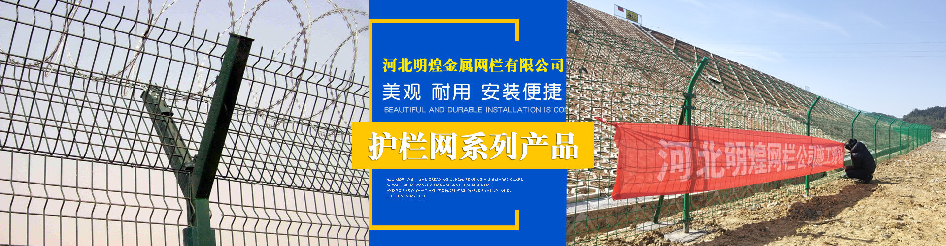 河北明煌金屬網(wǎng)欄有限公司生產(chǎn)、安裝:體育場(chǎng)圍欄、護(hù)欄網(wǎng)、交通護(hù)欄、護(hù)欄底座、隔離墩、鐵路防護(hù)柵欄、邊坡防護(hù)網(wǎng)、防風(fēng)抑塵網(wǎng)、荷蘭網(wǎng)、石籠網(wǎng)、防眩網(wǎng)、土工格柵、聲屏障、隔離柵、刀片刺網(wǎng)、繩索護(hù)欄;