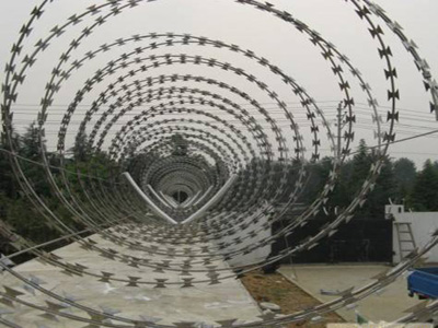 刺絲滾籠也稱為刀片刺絲、刀片刺網(wǎng),是一種新型護(hù)欄網(wǎng)產(chǎn)品。它具有嚇阻效果好、美觀、施工便利,經(jīng)濟(jì)實(shí)用等特點(diǎn)。主要用于園林公寓,機(jī)關(guān)單位,哨所,邊防等的圈禁防護(hù)。刀片刺網(wǎng)由熱鍍鋅鋼板或不銹鋼薄板沖壓出尖銳的刀片狀,高張力鍍鋅鋼絲或者不銹鋼絲做芯線組合而成的阻絕器材。由于刺網(wǎng)有刺不易觸摸,因而能達(dá)到防護(hù)隔離。產(chǎn)品的主要材質(zhì)有鍍鋅板和不銹鋼板。