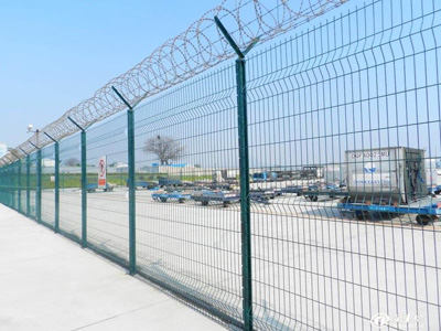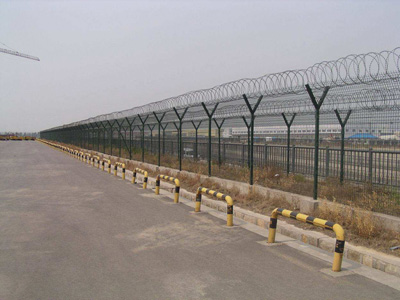 機(jī)場護(hù)欄網(wǎng)又稱作“Y型防御護(hù)網(wǎng)”,是由V型支架立柱加強(qiáng)型焊接片網(wǎng),防盜連接件和熱鍍鋅刀片刺網(wǎng)組成強(qiáng)度和防御性級別很高。被應(yīng)用在機(jī)場,基地等場所。