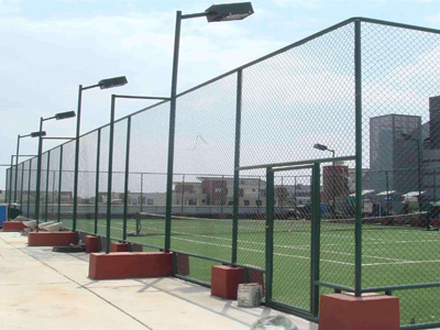 現(xiàn)場安裝、網(wǎng)柱、圍網(wǎng)現(xiàn)場施工安裝, 產(chǎn)品特點是靈活性,可根據(jù)現(xiàn)場要求隨時調(diào)整結(jié)構(gòu)、造型和尺寸。其安裝簡單,網(wǎng)頁平整,耐沖擊,耐碰撞,不易變形,只是對網(wǎng)柱強度和繃網(wǎng)技術(shù)要求較高,可由施工人員安裝。特別適用于高度4米以內(nèi)的網(wǎng)球場圍網(wǎng),籃球場圍網(wǎng)、足球場圍網(wǎng)、排球場地和體育訓練場地。